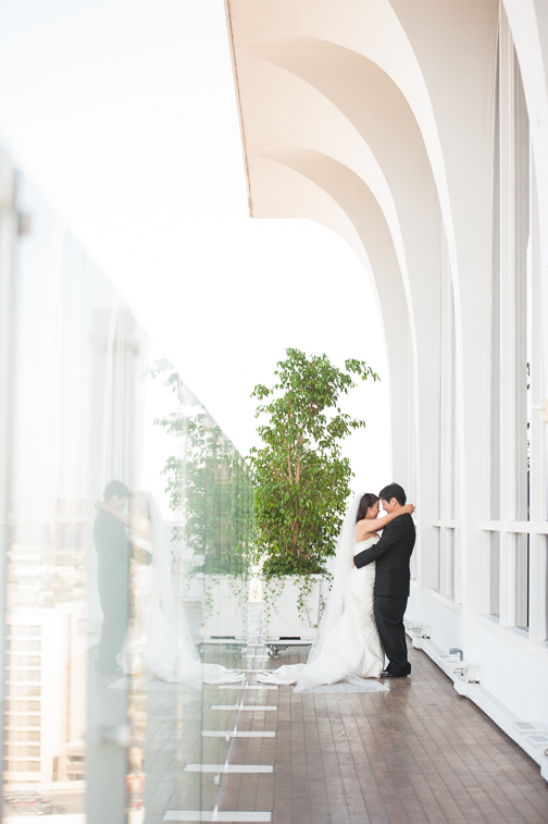 Amy and Victor know how to host a good time. Cathedral length veil for an epic cathedral. Check. Gorgeous evening on a DTLA rooftop. Check. Wedding cake and pastries from the legendary Porto’s. Check. Cigar lounge on the rooftop of a rooftop. Check. Friends and family who know how to get down, shower this deserving couple with love, and get their dance on. Double check!